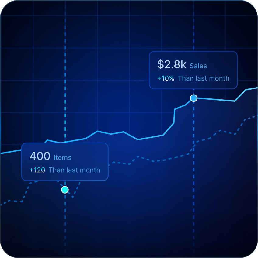 Get a complete overview of your sales, revenue, and customer trends. Use detailed reports, interactive charts, and historical data to measure growth and spot opportunities.